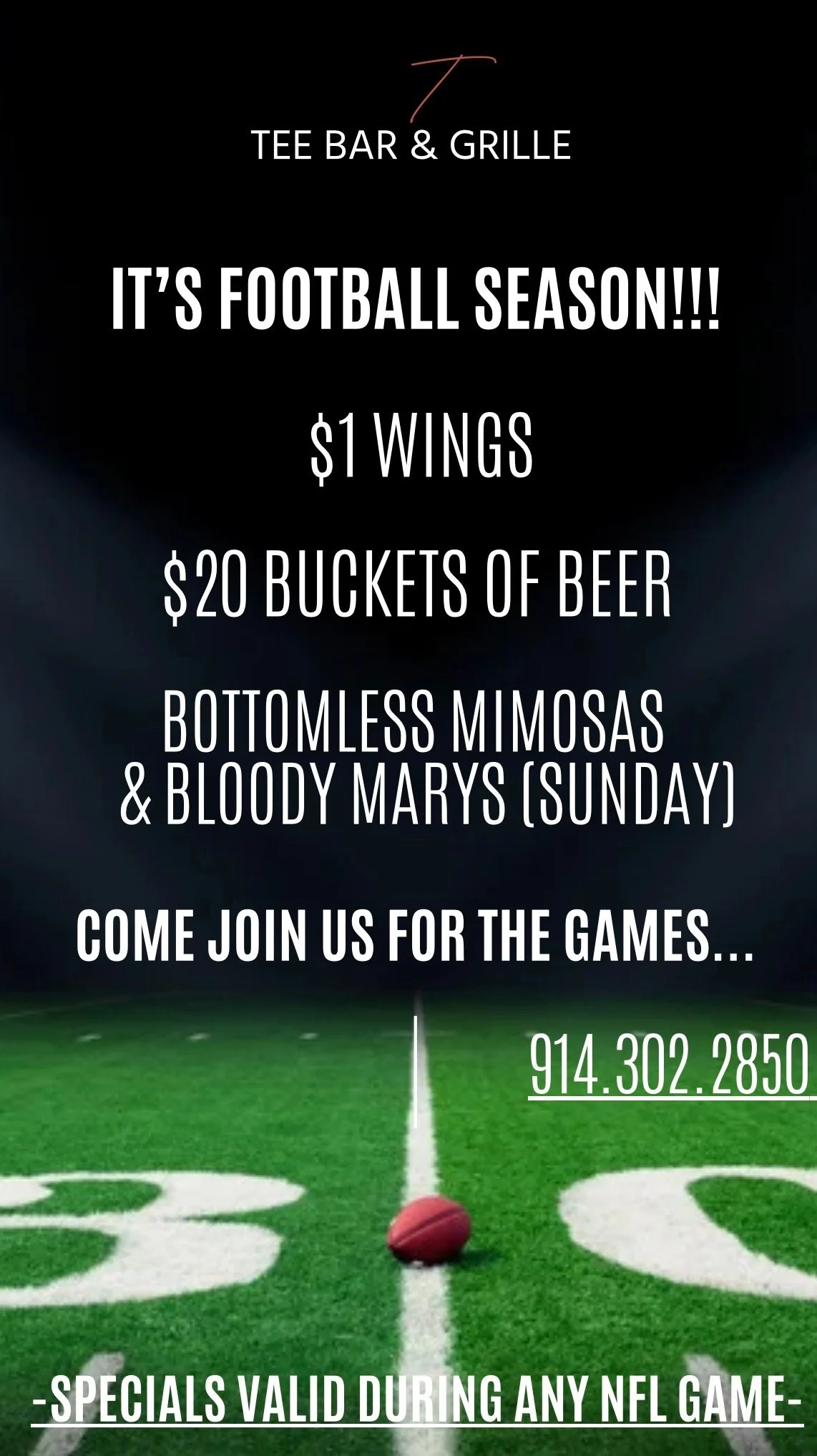 Grab your crew, catch every play, and make Tee Bar your NFL headquarters all season long!